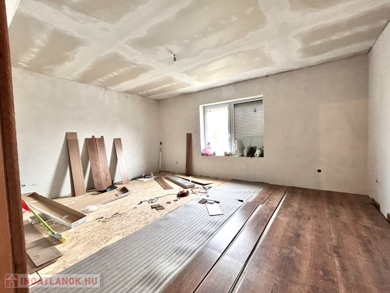 -Jelenleg a a fürdő , wc burkolása, és a szobák laminált parkettázása zajlik