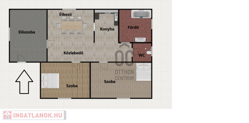 A házban két szoba , egy fürdő,külön egy wc, egy konyha-étkező és egy előszoba található.