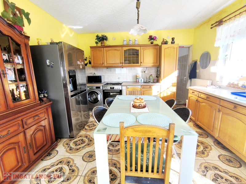 Megvételre kínálunk Bakonyszentlászlón egy 73,5 nm-es hasznos lakóterületű, 2 szobás jó állapotú családi házat tágas konyha-étkezővel, garázzsal, melléképülettel.