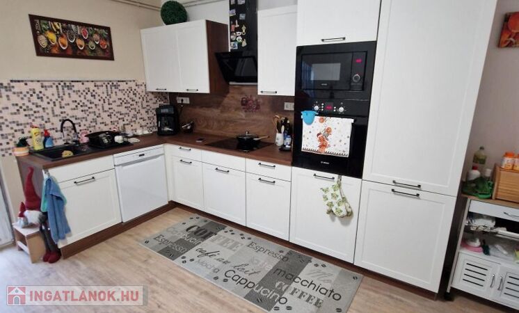 Győrtől mindössze 30 perc távolságra, Bakonyszentlászló központjában, 1917m2-es telken, 103m2 lakóterületből és 28m2es garázsból álló, 3 szobás, 2 fürdőszobás családiház eladó. Az ingatlan két éve több felújításon eset átt. Úgy mint külső homlokzati hőszigetelés, födém szigetelés, nyílászárók cseréje, elektromos hálózat cseréje, hideg és meleg burkolatok cseréje, csatorna és vízhálózat cseréje, új konyhabútor, beépített gépekkel, amik a vételár részétn képezik. A ház fűtéséről egy kondenzációs gázkazán gondoskodik, radiátor hőleadókkal. E mellett rendelkezésre áll egy vegyes tüzelésű kazán illetve egy hűtő-fútő klíma is. A nagy teleken található egy ásott kút, borospince, állattartásra alkalmas ólak valamint a kertben kb. 50 darab gyümölcsfa.