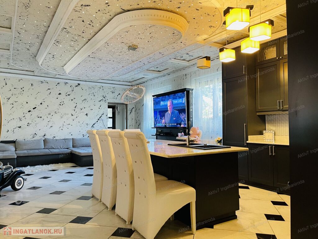 Az ingatlan a Földhivatali nyilvántartás szerint 2233 m2 területű kivett lakóház, udvar. A telken lévő családi ház közel 300 m2- es téglaépítésű, jelenlegi kialakítása szerint egy 65 m2 területű amerikai konyha-nappali, két nagy méretű hálószoba, fürdőszoba WC-vel, gardrób helyiségekkel.