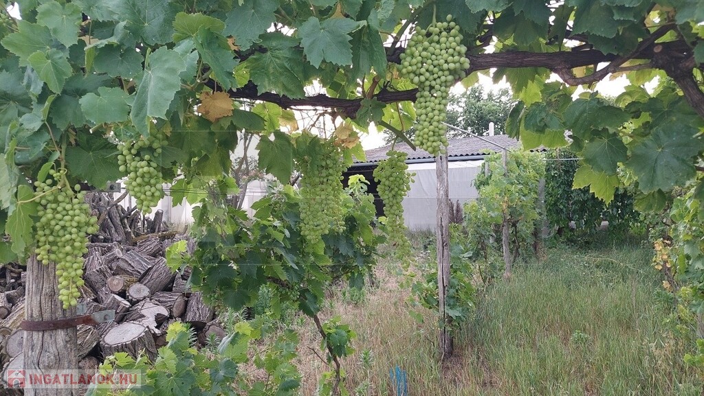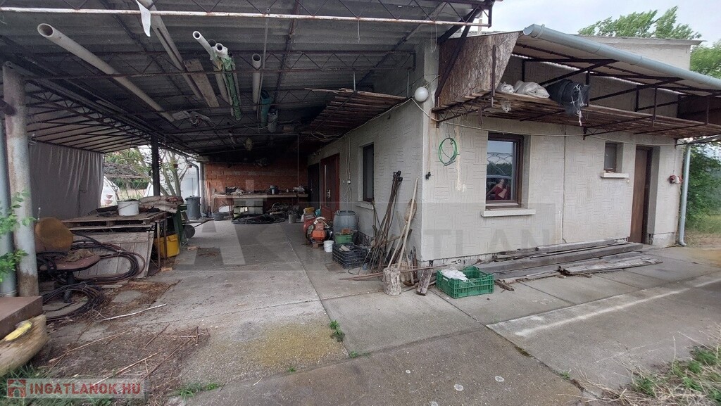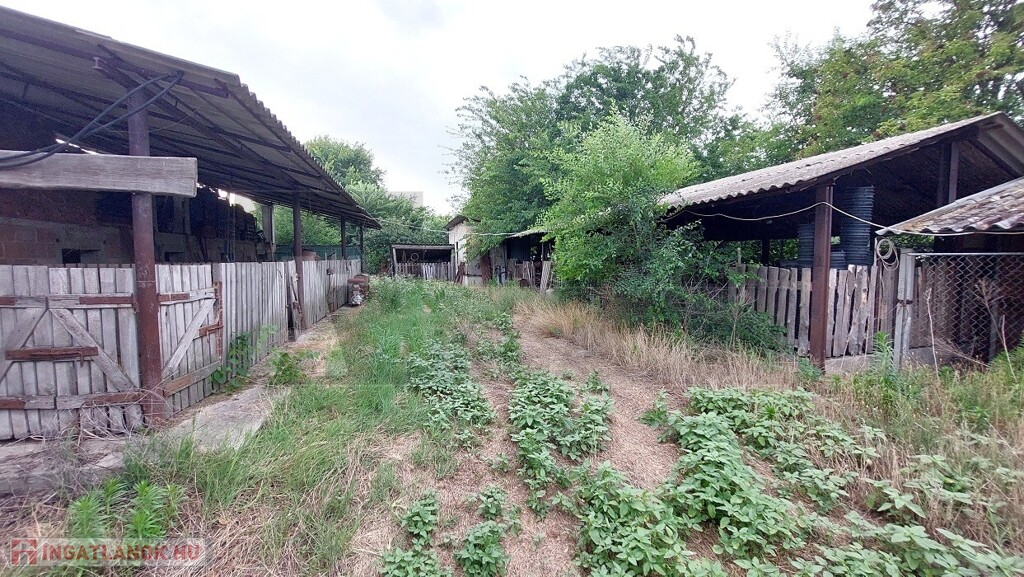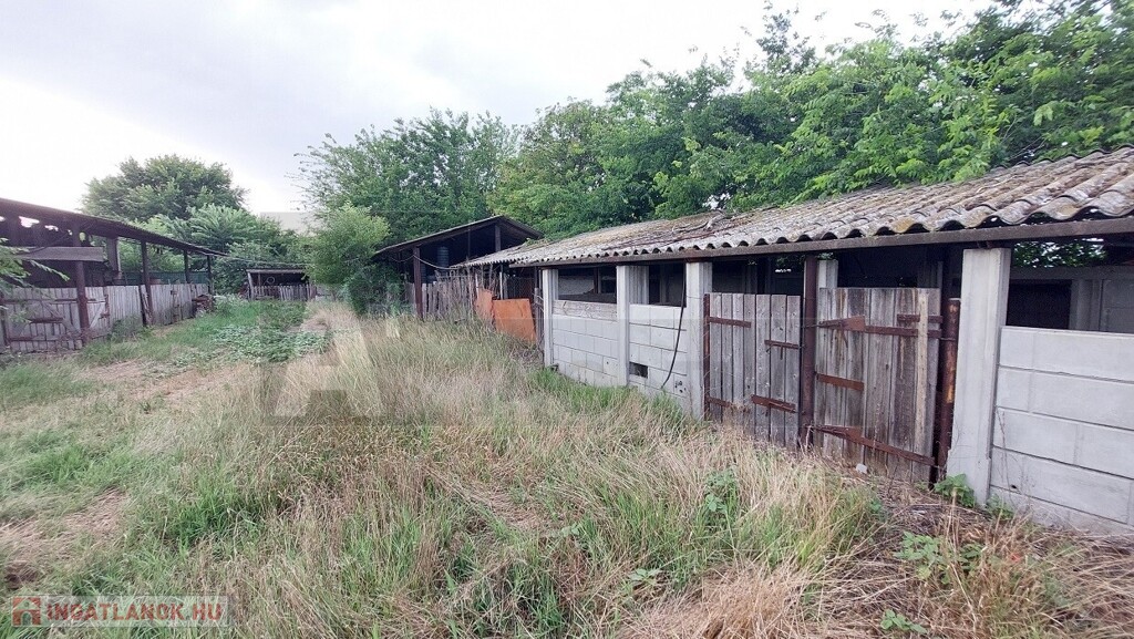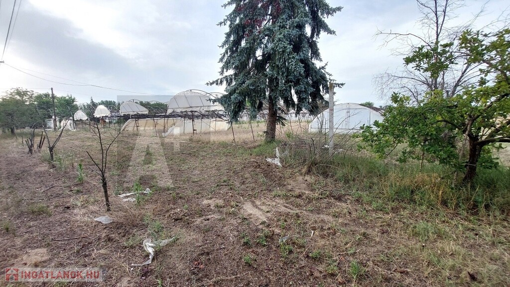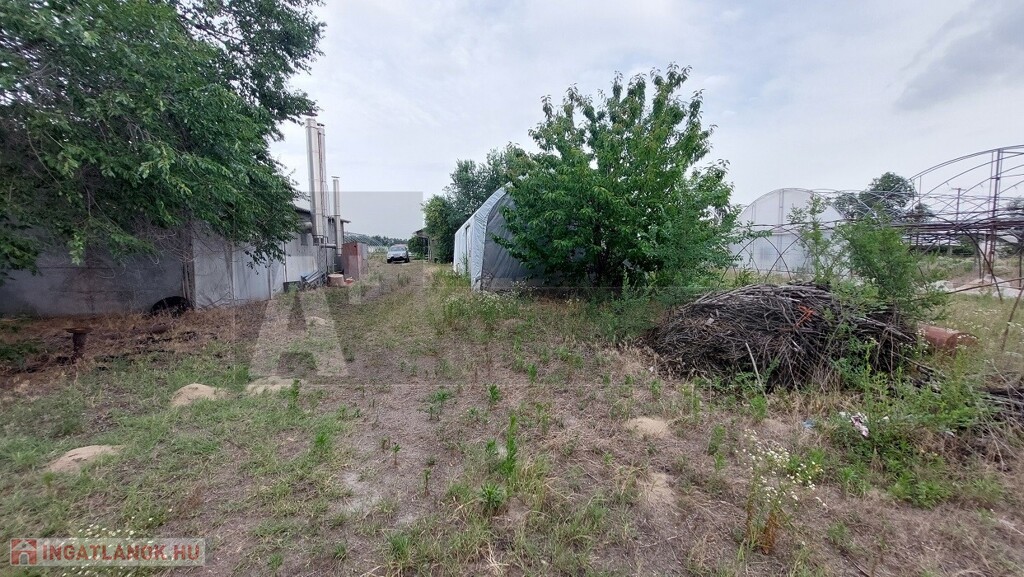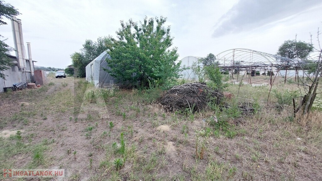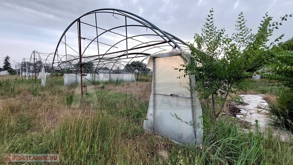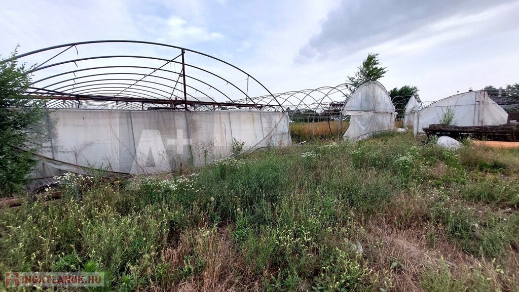 A telken a jó állapotú fóliaházak vázai mellett kazánház, a telek végén ólak vannak.
