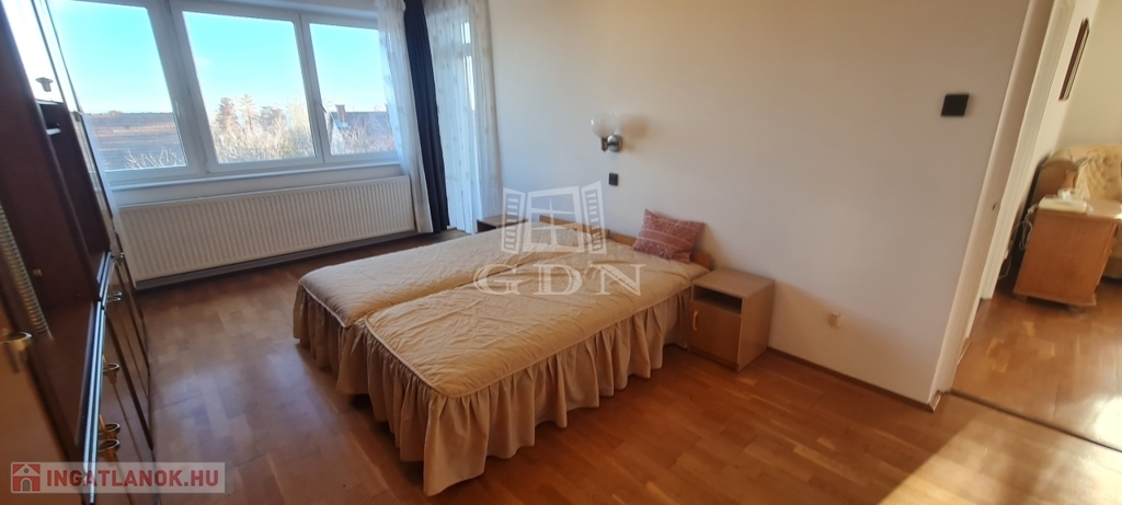 - Az emelet egy tágas nappaliból, három hálószobából, konyha-étkezőből, fürdőszobából, Wc-ből és két erkélyből áll
