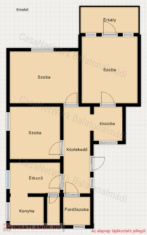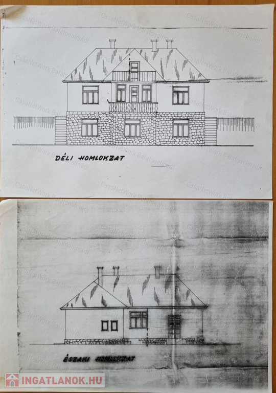 - emelet: közlekedő, kazánház, konyha-étkező, három szoba, egy kisszoba, fürdőszoba és toalett, erkély csodás balatoni panorámával