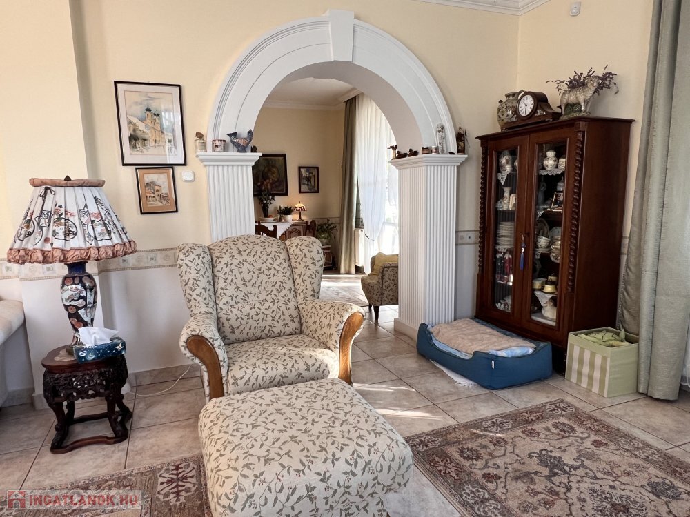 Az ingatlan 1996-ban épült, 280 m² összterületű, két szinten, 800 m²-es parkosított telken helyezkedik el.