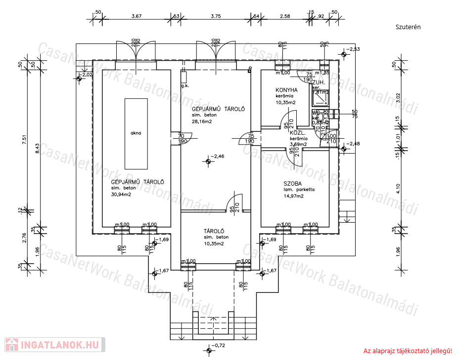 - szuterén: komplett vendéglakás és kettő nagyméretű garázs