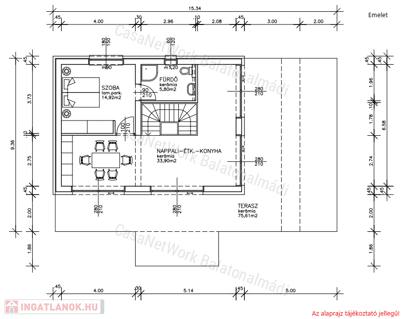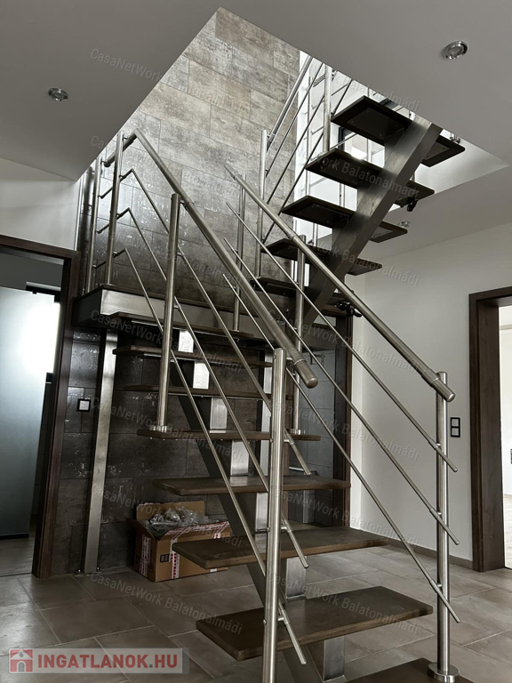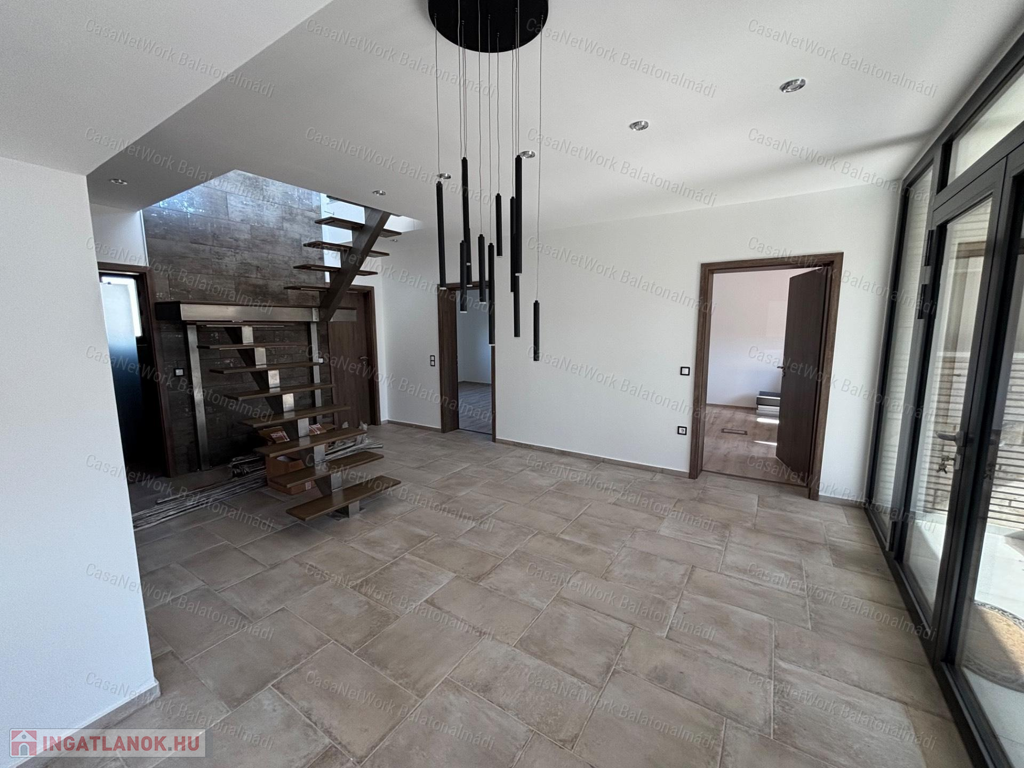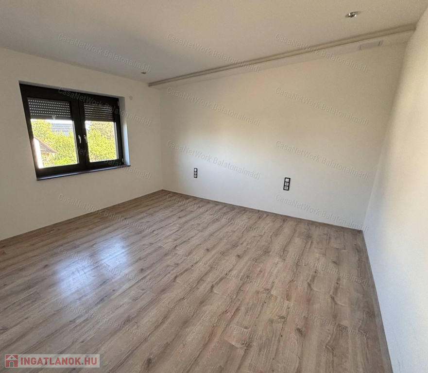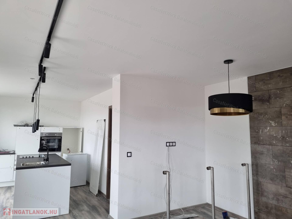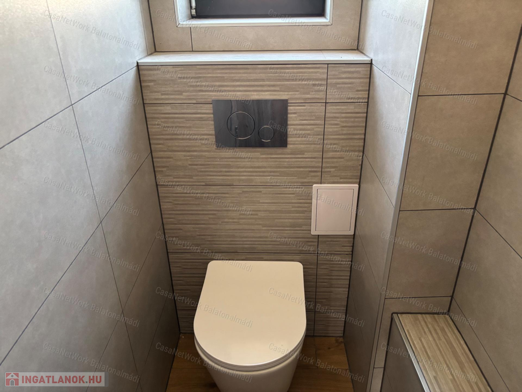 - emelet: egy szoba, fürdőszoba és toalett, panorámás, amerikai konyhás nappali, a különleges, 76 nm-es erkélyhez kapcsolódva, ahonnan elbűvölő a kilátás az Öreg-hegyre, a Fűzfői-öbölre és a túlpartra is