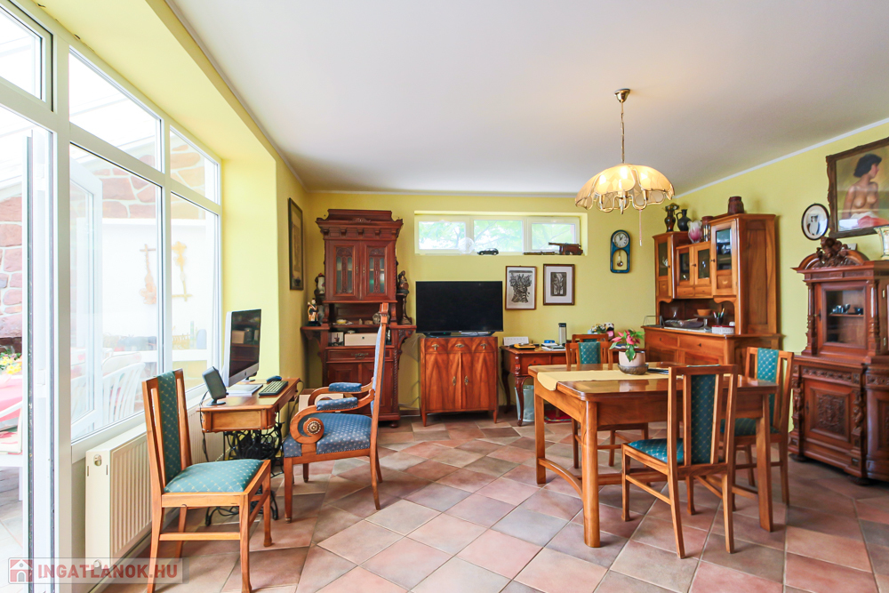 Az épület a 90-es évek derekán a térségre jellemzően vöröskőből és téglából épült. Ez a remek állapotú ház mérete nettó 140 négyzetméter és egy hamisítatlan balatoni borospincét is magában rejt . Ősfás kertje kiváló helyet biztosít a kültéri kikapcsolódásra, legyen szó sütögetésről, családi összejövetelekről, napozásról, a lényeg, hogy itt kipihenheted magad. Megközelítése aszfaltozott úton lehetséges, a strandtól kb. 1.5 kilométerre helyezkedik el.