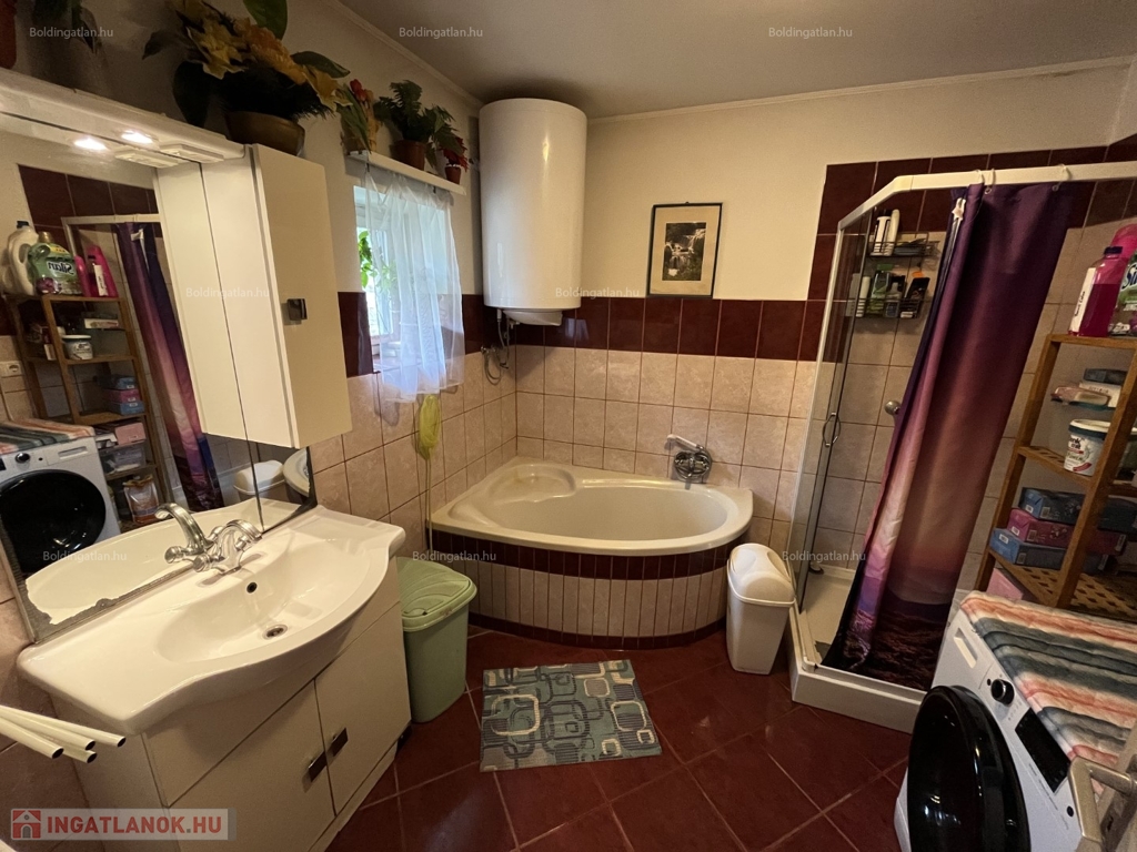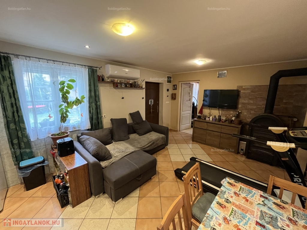 Balatonbogláron a központ közelében található 61 m2-es családi ház eladó. A lakóházban 2 szoba, előszoba-nappali-étkező-konyha, fürdőszoba-wc helyiségek találhatóak. Az épület fűtése a nappaliban lévő kandallóról működő központi fűtéssel megoldott, valamint a nappaliban légkondícionáló lettfelszerelve. A házat a tulajdonosa korábban felújíttatta, ekkor a villany-, és a vízvezetékek, a fal -, és az aljzatszigetelés lett kicserélve, illetve a fűtés lett még kiépítve. Az udvarra 2 autó be tud állni kényelmesen a térkövezett részre. Telek: 572 m2