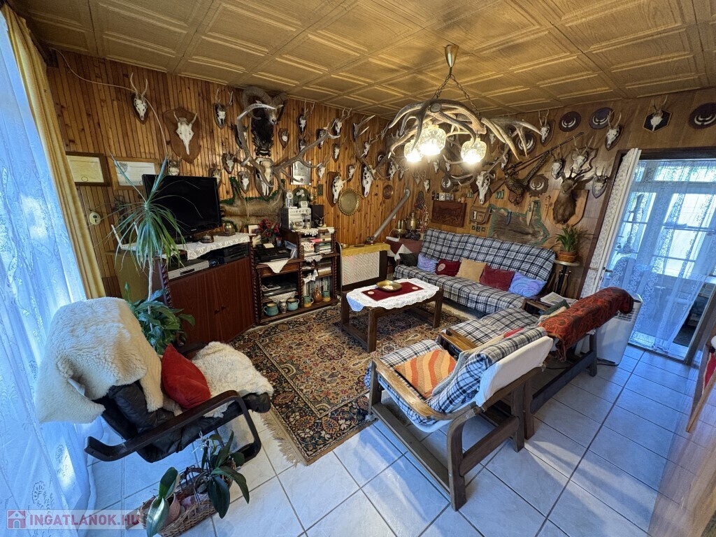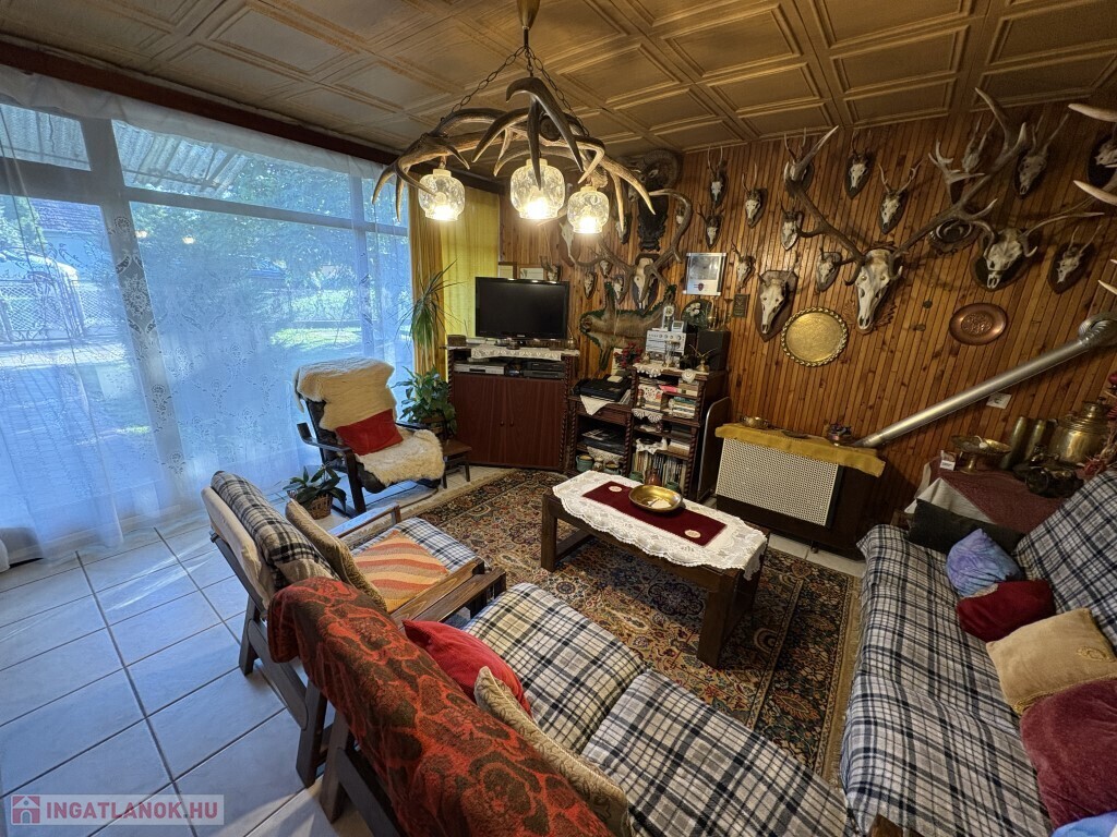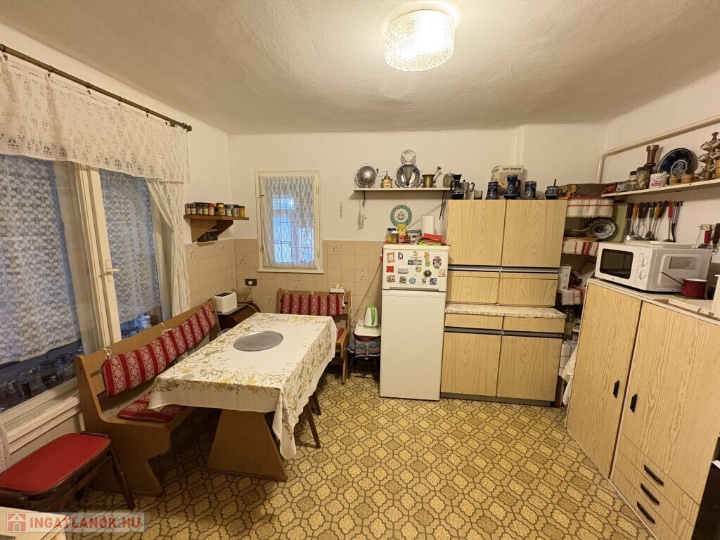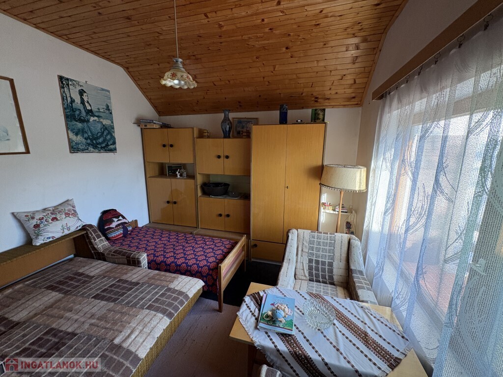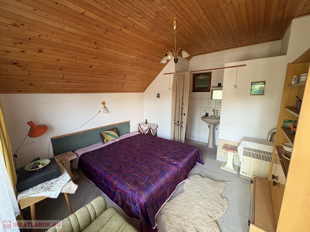 Balatonbogláron - az autópálya lehajtó közelében - két generációnak, vagy nyaraltatásra alkalmas lakóház, a képeken látható műszaki állapotban eladó. A 111 m2-es lakóház földszinti részén nappali, közlekedő, kis előtér, 3 szoba, fürdőszoba, wc, konyha, kamra, tároló, kazánház helyiségek, illetve egy garázs vannak. A 17 m2-es garázs feletti 24 m2-es lakrészben 2 szoba, zuhanyzó-wc kerültek kialakításra, valamint a padlástér igény esetén beépíthető. Az épület fűtése gázkazánnal, vegyes tüzelésű kazánnal és néhány helyiségben gázkonvektorral megoldott, a melegvízet villanybojler szolgáltatja. Az udvarban tároló, kút, pince és kisebb gazdasági épületek találhatóak, a 380V a garázsban rendelkezésre áll. Telek: 1.377 m2 - A tulajdonos a vételárba esetleg kaposvári lakást legfeljebb 1. emeletig beszámít! Amennyiben az ingatlan felkeltette az érdeklődését, kérem hivatkozzon a 534. számú ajánlatra! Irodánk címe: Kaposvár Irányi D. u. 9.