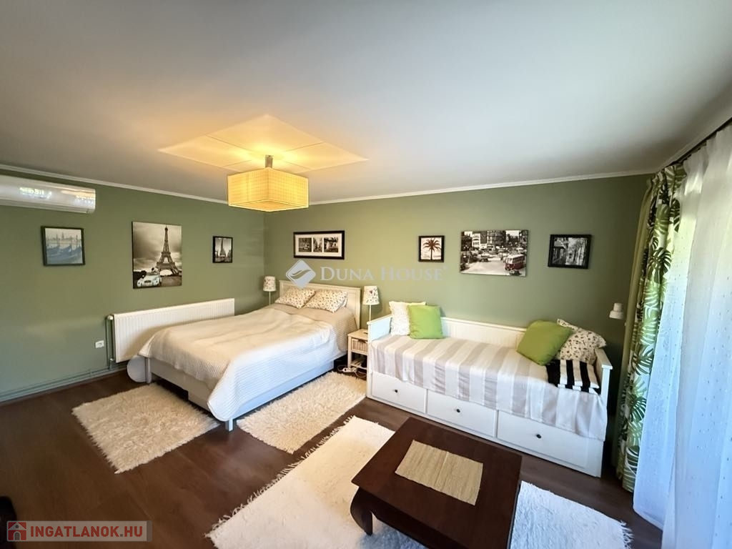 Kivételes adottságú, modern apartmankomplexum Balatonfenyvesen eladó!A közel 2000 m²-es, parkosított telken két épületben három külön apartman, egy wellness részleg és számos kényelmi funkció várja új tulajdonosát.Főbb jellemzők:-Összesen 210 m² alapterület-3 különálló apartman, összesen 18 fő elszállásolására alkalmas-Wellnessház: 6 fős infra- és finn szauna, 6 fős jacuzzi, dézsazuhany, hangulatvilágítás-Grillező, bográcsozó, fedett étkező hintaággyal-Teniszpálya (jelenleg focipályaként használva), játszótér, csocsó, pingpong, trambulin-Gyümölcsös, fűszerkert, két kút öntözéshez-Garázs + fedett autóbeálló-Napelem kiépítésére alkalmas tájolás-Ipari áram, internet, riasztó, klíma, kandalló-A hátsó épület tetőterének beépítése engedélyezveElhelyezkedés:A Balaton mindössze 300 méterre található. Strand, kikötő, bolt, étterem, vasút- és buszmegálló 300600 méteren belül elérhető. Az M7 autópálya percek alatt megközelíthető, mégis nyugodt, csendes környezetben helyezkedik el.Befektetésnek is ideális:Hosszú évek óta fizető vendéglátóhelyként működik, telt házzal és kiváló minősítéssel. Tökéletes választás többgenerációs családoknak, baráti társaságoknak, cégeknek vagy akár nyári táborokhoz is.Az ingatlan tehermentes. Ilyen komplexitású és adottságú lehetőség ritkán adódik jöjjön el, nézze meg személyesen!