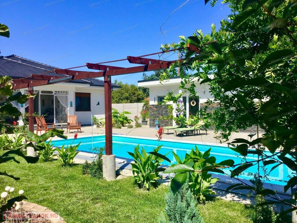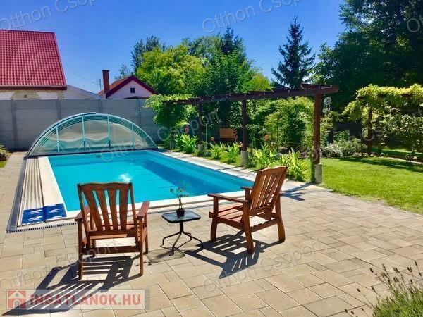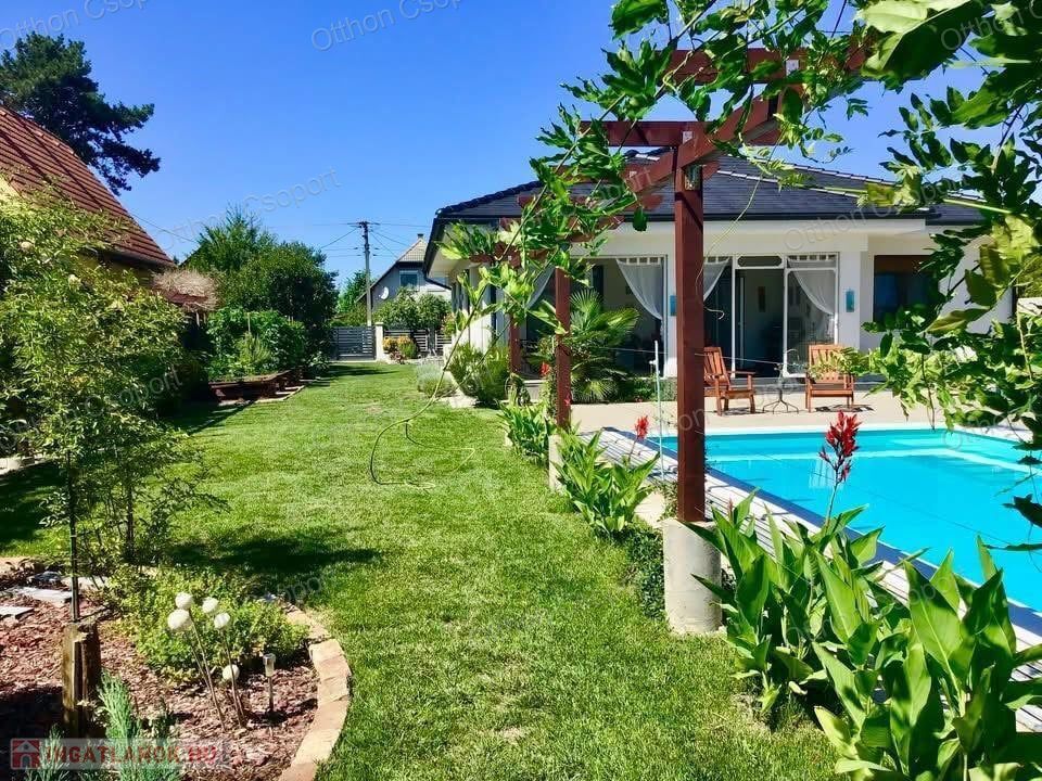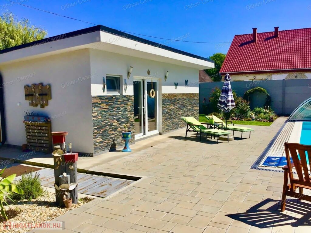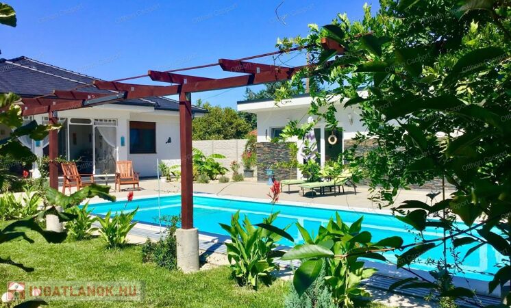 Prémium, modern Balaton-közeli családi ház vendégházzal, fedett medencével – 300 m-re a vízparttól.