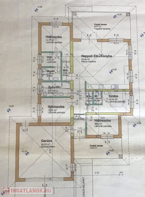 • 36 m²-es fűthető garázs közvetlen bejárattal