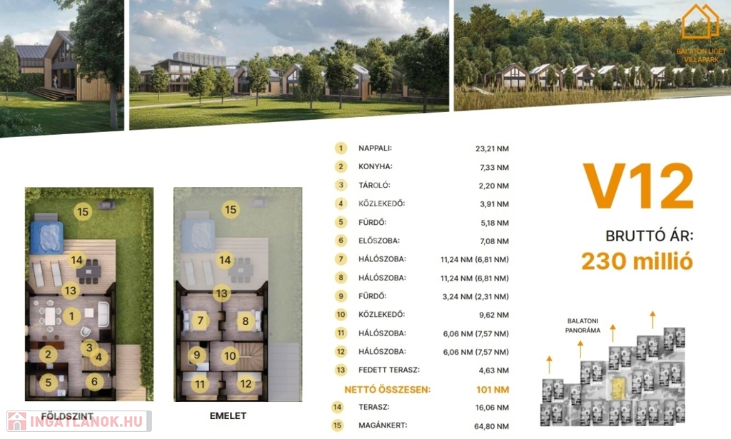 min. 62 m² magánkert.