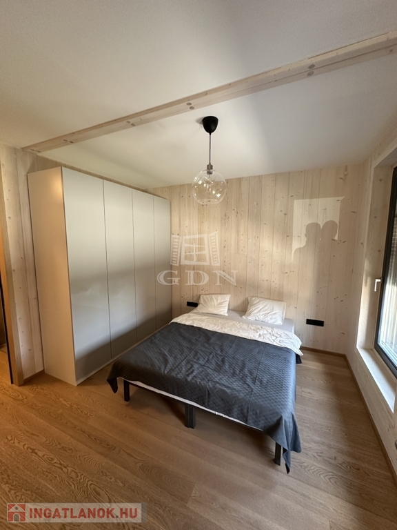 Levegős hőszivattyú (VRV splitklíma), 2,5 kW napelem rendszer, elektromos redőny, szúnyogháló, beépített bútorok, homlokzati díszvilágítás.