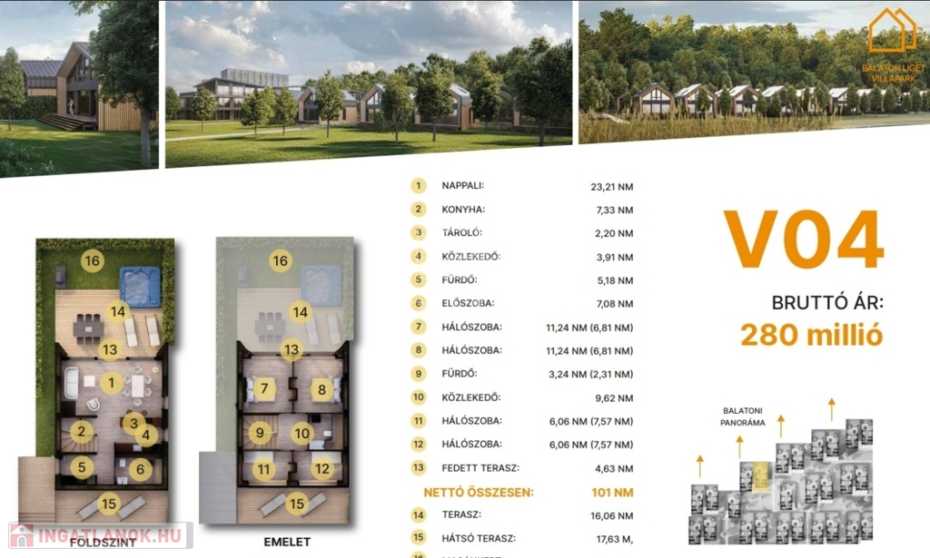 min. 64 m² magánkert.