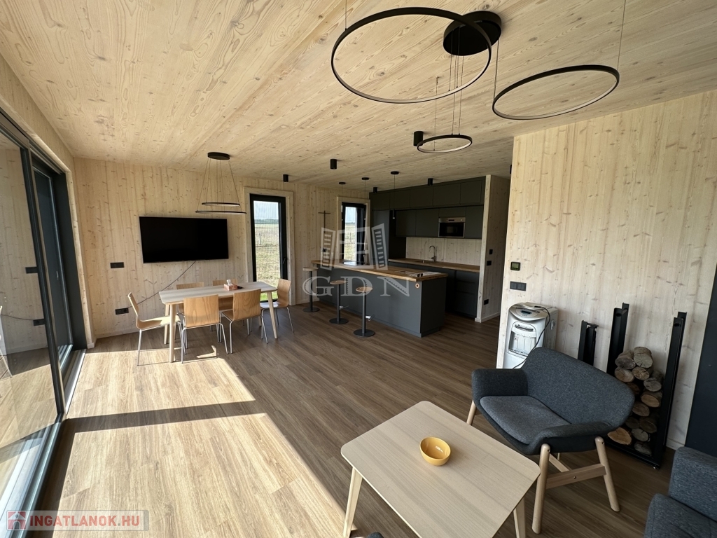 Prémium konyhabútor konyhaszigettel, okosotthon rendszer, szauna (épületen belül), látvány design kandalló, 4 személyes prémium jacuzzi, gázos grillsütő.