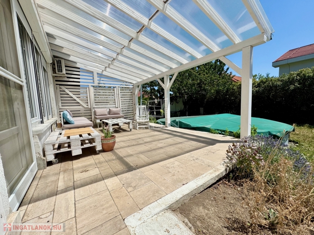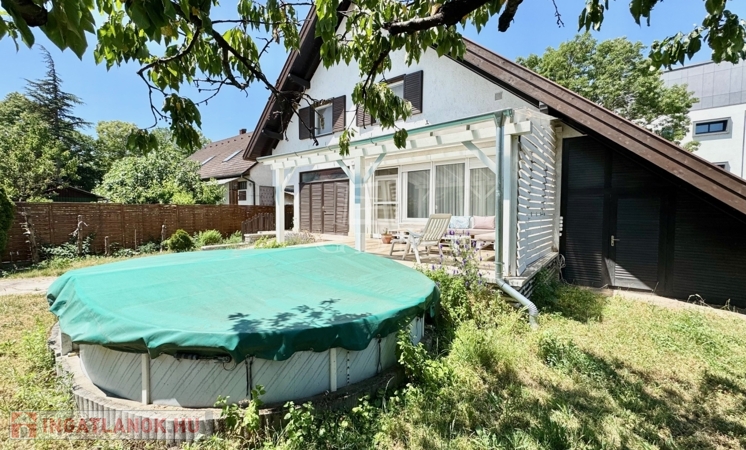A Balaton északi partjának egyik legszebb városában, Balatonfüreden, kiváló közlekedés és ellátottság mellett, kertvárosi környezetben, 10 perc sétára a vitorlás kikötőtől, és a Tagore sétánytól, 586 m2-es összközműves telken, 1990-ben épült, 190 m2-es lakóterületű, 2 szintes, dupla komfortos, dupla nappalis + 3 hálószobás, a földszinten található nappaliból közvetlen 40 m2 -es teraszkapcsolattal rendelkező, kiváló elosztású, külön nyíló szobás, napos-világos, K-NY-i tájolású, alacsony fenntartású, kombinált gázcirkó és cserépkályha fűtésű, jó állapotú, 2018-ban új thermo ablakokra cserélt, klimatizált, riasztórendszerrel felszerelt családi ház, beépített, gépesített konyhával, nagyméretű tárolóval, garázzsal, úszómedencével, rendezett kerttel, rugalmas költözéssel eladó.