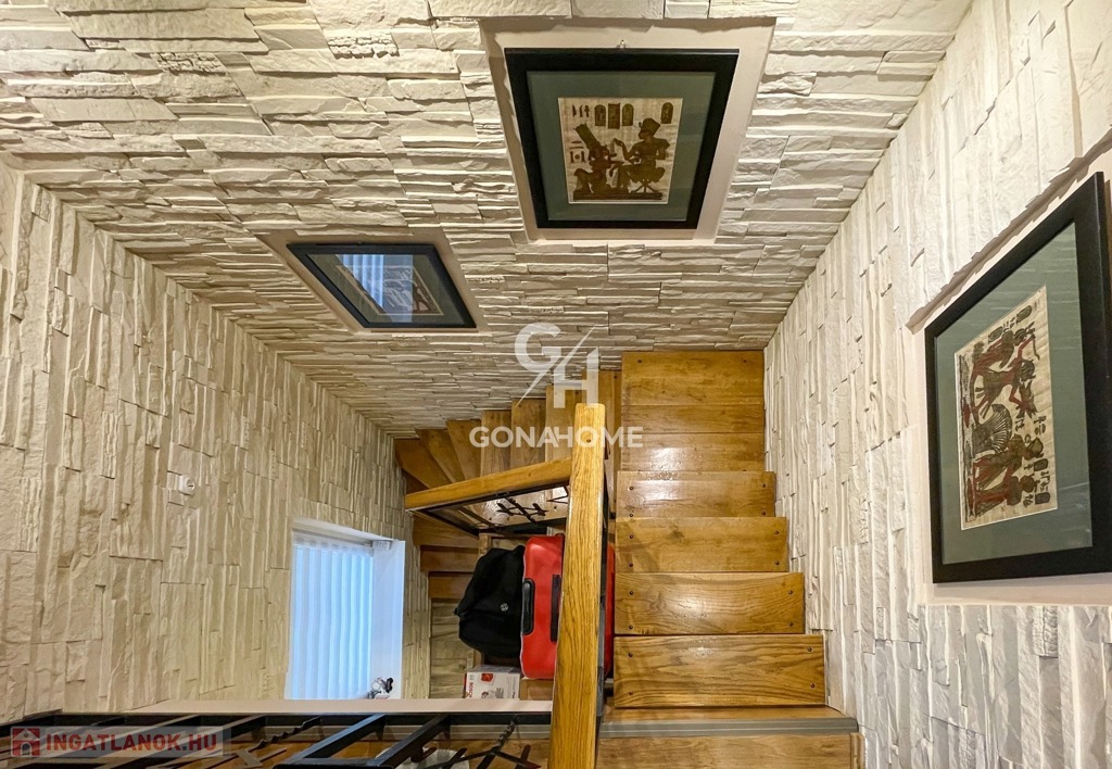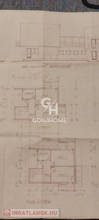 Emelet: 2 szoba, fürdőszoba, mosókonyhás WC, 2 erkély (egyik nagyobb, balatoni kilátással)