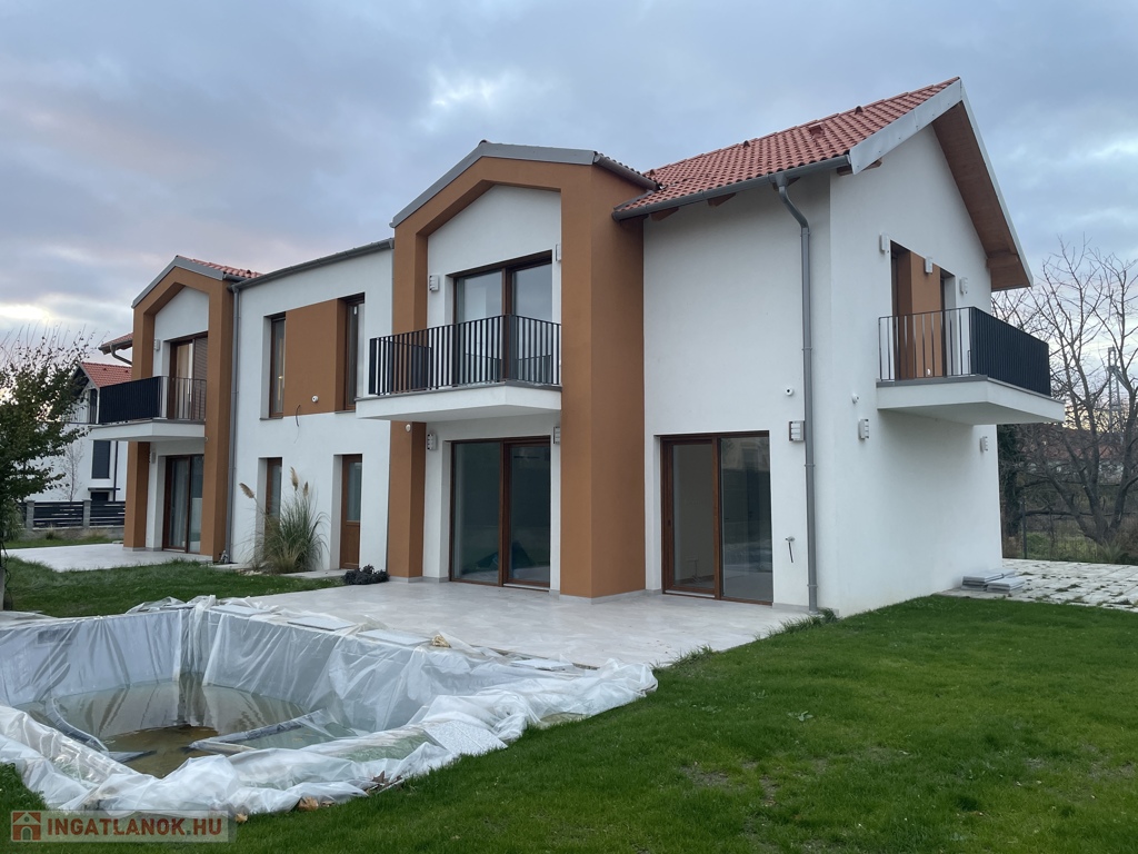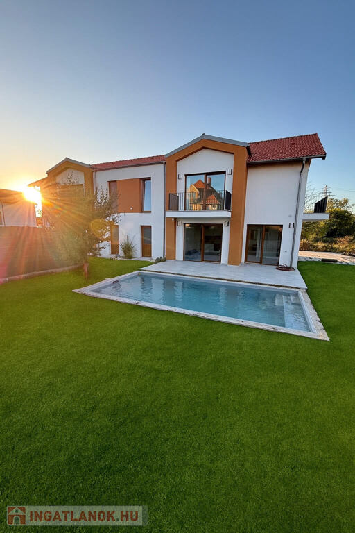 Balatonfüred központi részén, 450 m2-es, igényesen kialakított telken kínálom eladásra ezt a 149 m2-es, két szintes, újépítésű ikerházat, amely tökéletes harmóniát teremt a modern kényelem, a minőségi kivitelezés között.