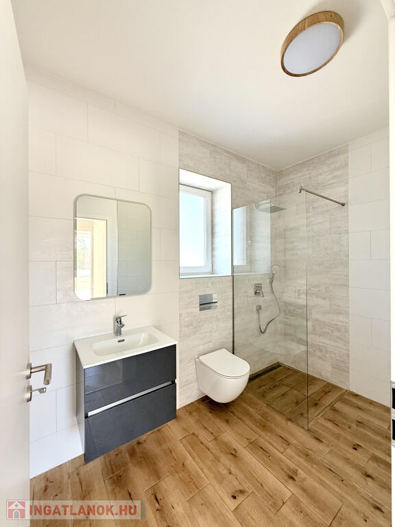 Balatonfüred központi részén, 450 m2-es, igényesen kialakított telken kínálom eladásra ezt a 149 m2-es, két szintes, újépítésű ikerházat, amely tökéletes harmóniát teremt a modern kényelem, a minőségi kivitelezés között.