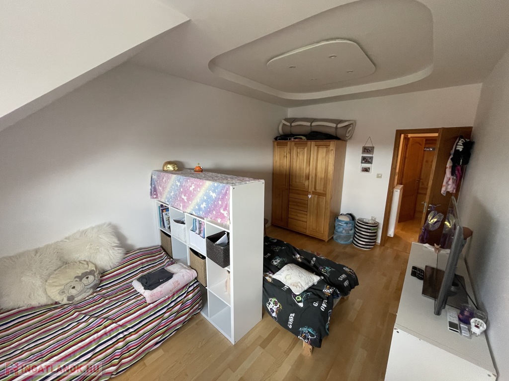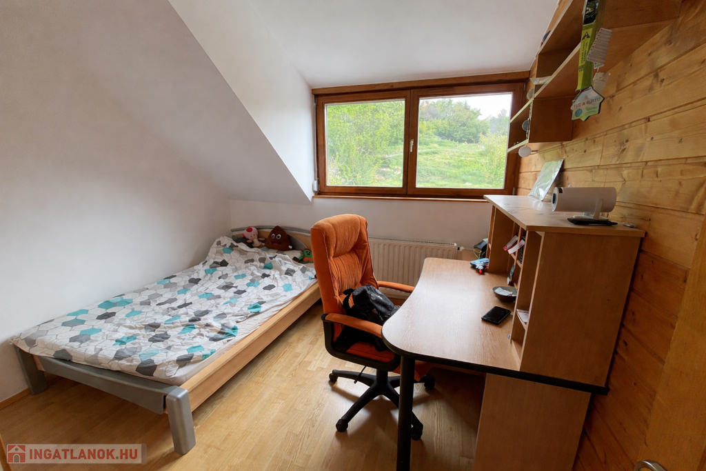 A felső szinten 4 kényelmes hálószoba és egy fürdőszoba biztosítja a család minden tagjának a saját életteret. Az otthon melegéről új gázkazán gondoskodik radiátoros hőleadással, amelyet egy hangulatos cserépkályha egészít ki. Továbbá egy korszerű, 5 kW-os napelemrendszer hozzájárul az alacsony fenntartási költségekhez, míg a központi porszívó a mindennapi kényelmet növeli.