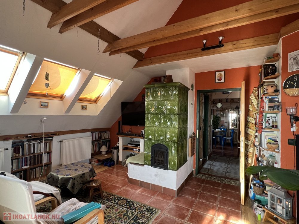 Fűtés: gázcirkófűtés (radiátor), cserépkályha, kandalló