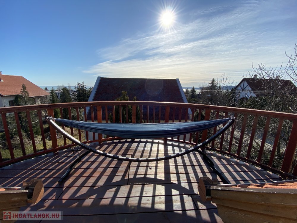 Az emeleten található 11 m²-es teraszról csodálatos balatoni panoráma tárul elénk, míg az alagsor külön lakrészként is használható, saját konyhával és fürdőszobával.