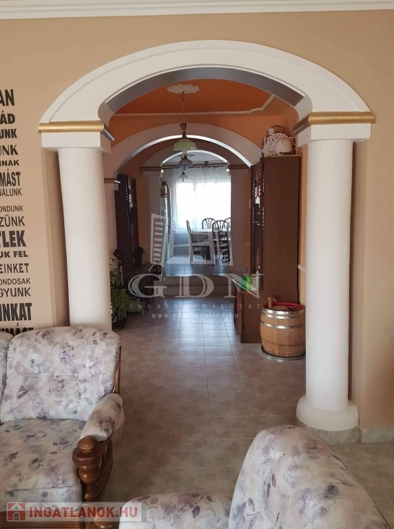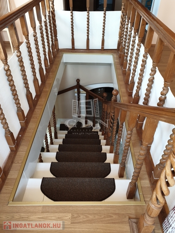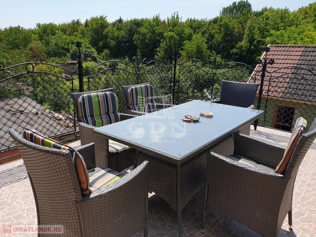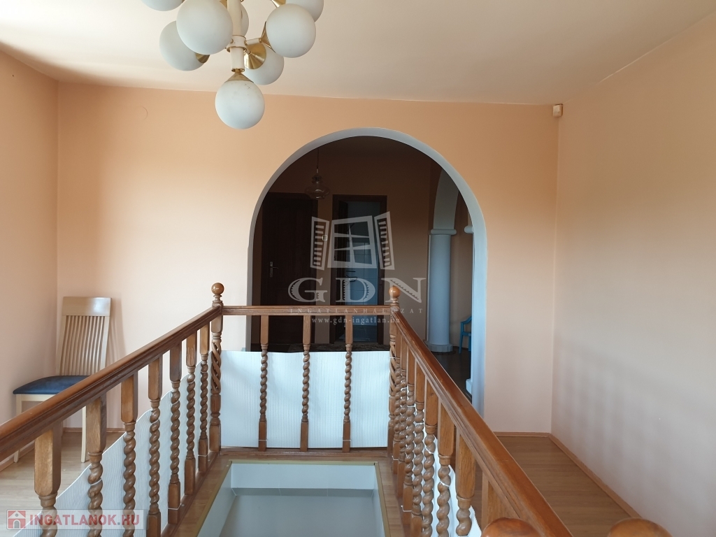 A főépület földszintjén található egy óriási nappali, egy háló, konyha ebédlővel és egy fürdőszoba, valamint külön helyiségben wc. Az emeleten található három hálószoba, fürdőszoba és illemhelyiség. Innen juthatunk ki az erkélyre is, ahonnan csodálatos kilátás tárul elénk. Az udvaron továbbá filagória és nyári konyha is használható. Parkolás akár az udvarban, de saját parkolóhelyek az ingatlan előtt.