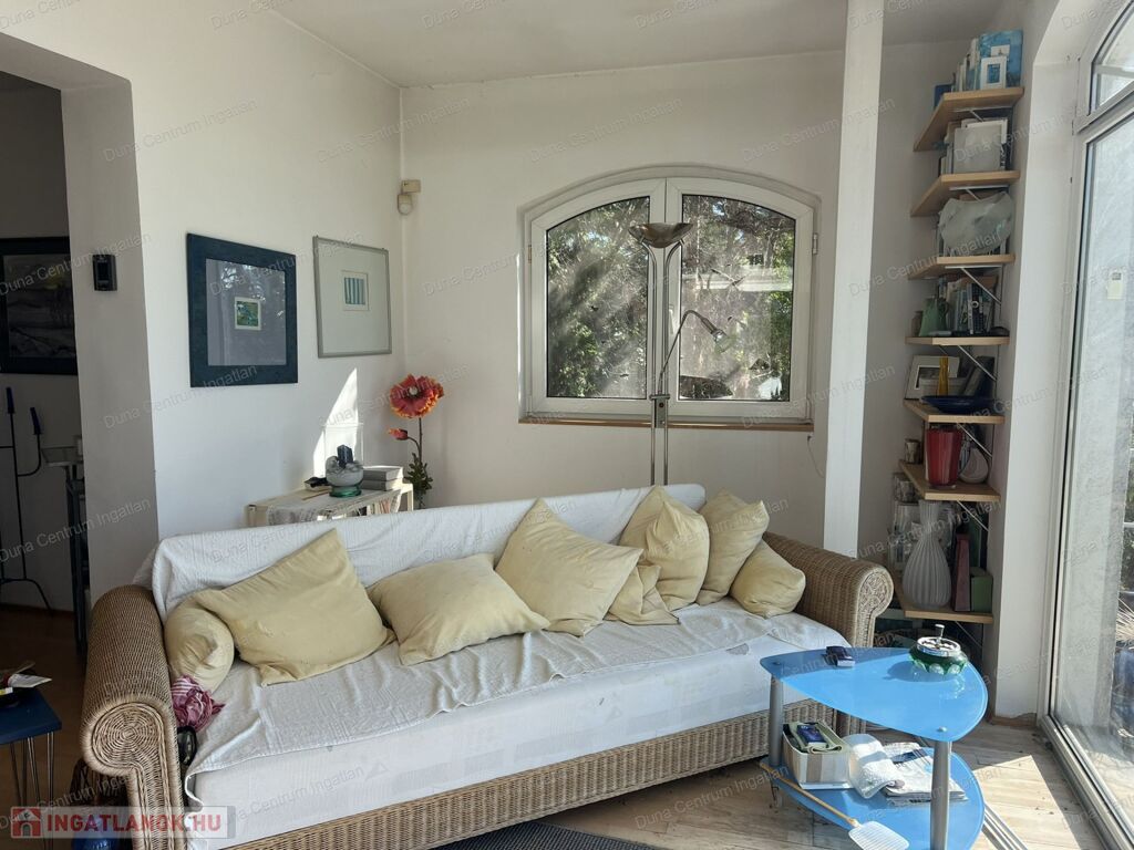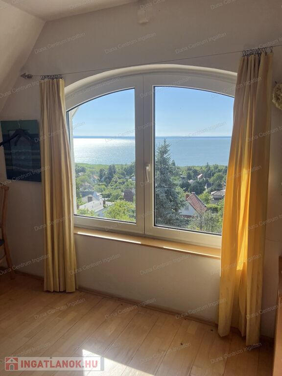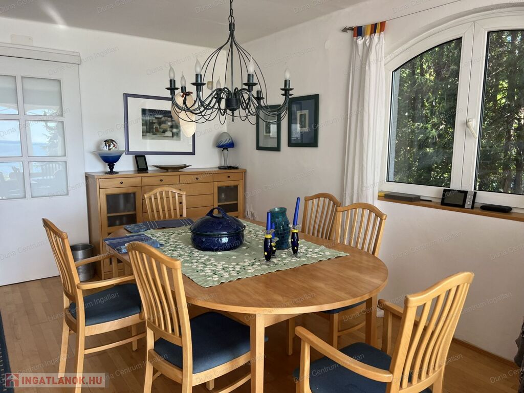 Balatongyörök kedvelt, csendes, erdő alatti részén örök panorámás ház eladó. Az ingatlan földszinti részén tágas nappali, amerikai konyha étkezővel, télikert, kis fürdőszoba ,míg a tetőtérben kettő szoba, gardrób, fürdőszoba található. A fűtés gáz kazánnal, illetve kályhával megoldott. A ház alatt hangulatos borospince van. A kert rendezett, árnyas fák alatt pihenhetünk. A telken egy különálló kis ház is található, amely alatt szintén borospince van.