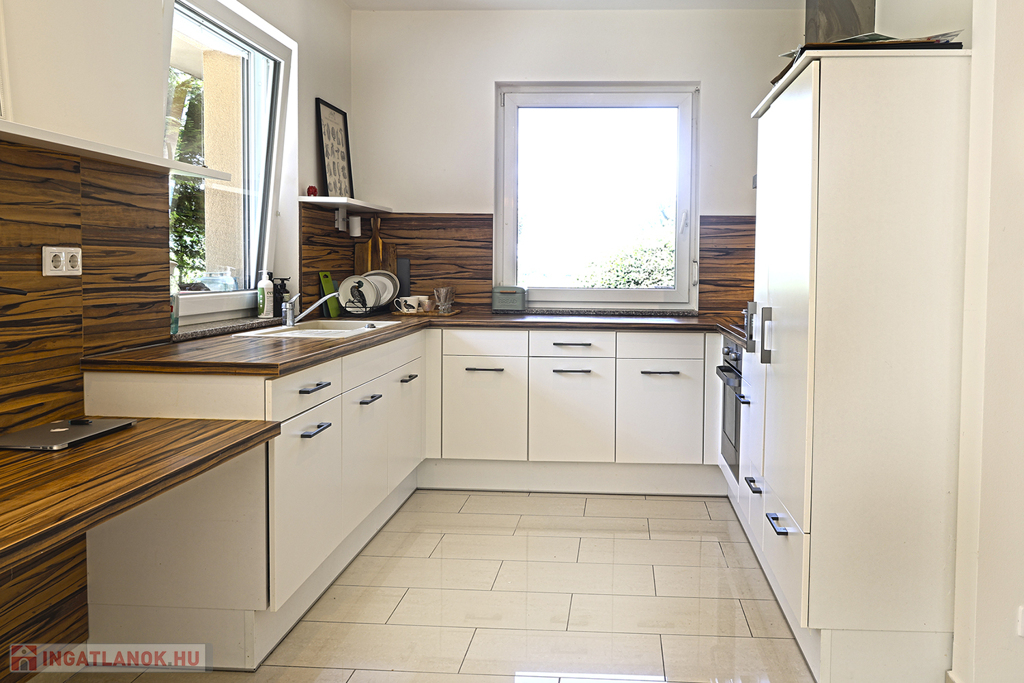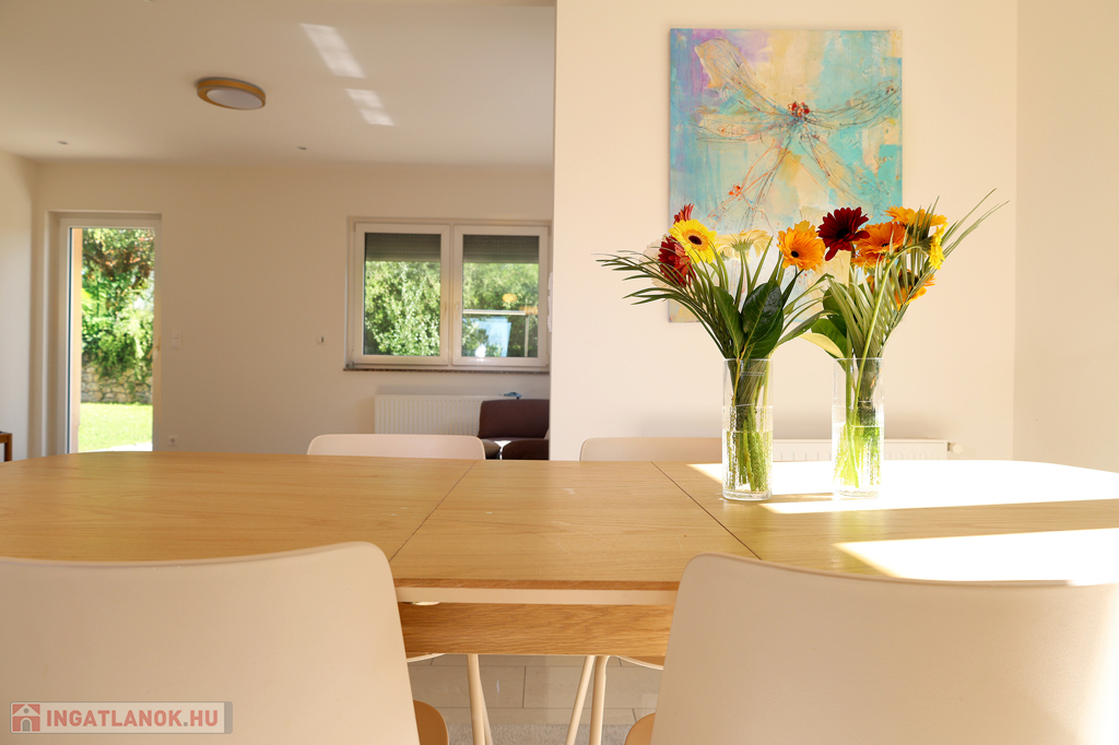 A kelet–nyugati fekvésű ingatlan tágas, világos tereivel, nagy nappalijával, három hálószobájával, teraszával és parkosított kertjével kényelmes otthont biztosít minden korosztály számára. Az erkélyről csodálatos panoráma tárul elénk, míg a kertből a vonyarcvashegyi Szent Mihály-kápolnában gyönyörködhetünk.