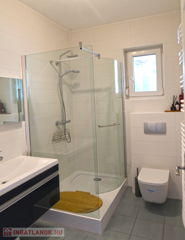 Tetőtér: előtér, közlekedő, gardrób (akár konyhává alakítható), kádas fürdőszoba WC-vel, 2 hálószoba, panorámás erkély.