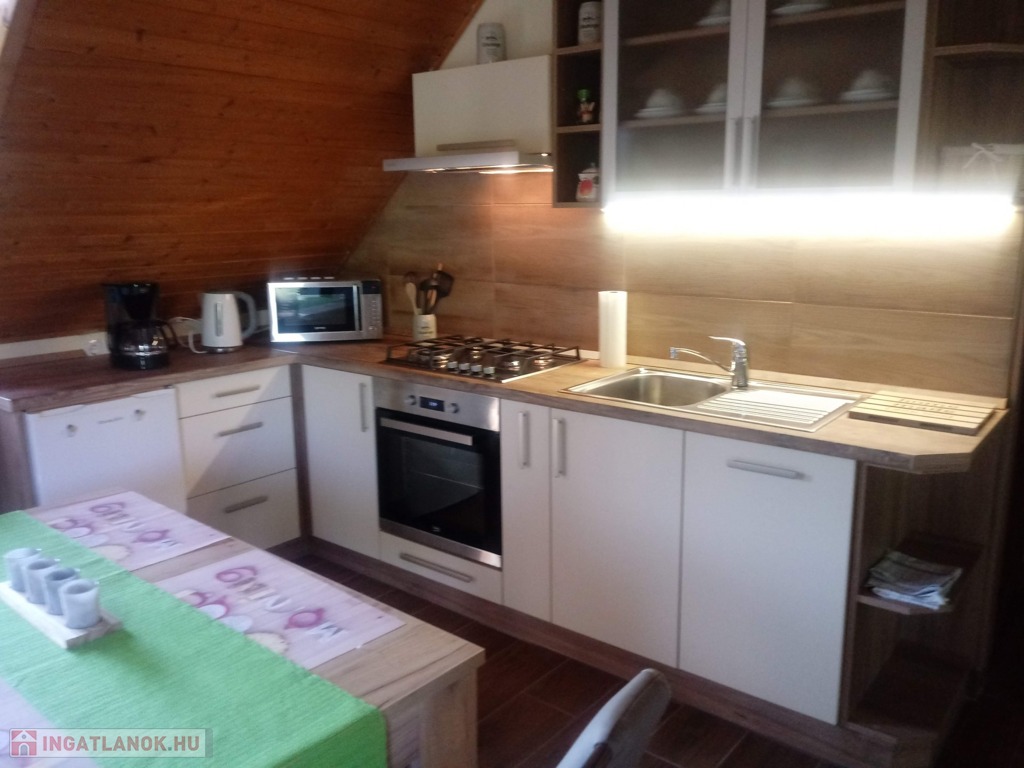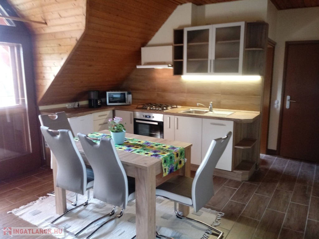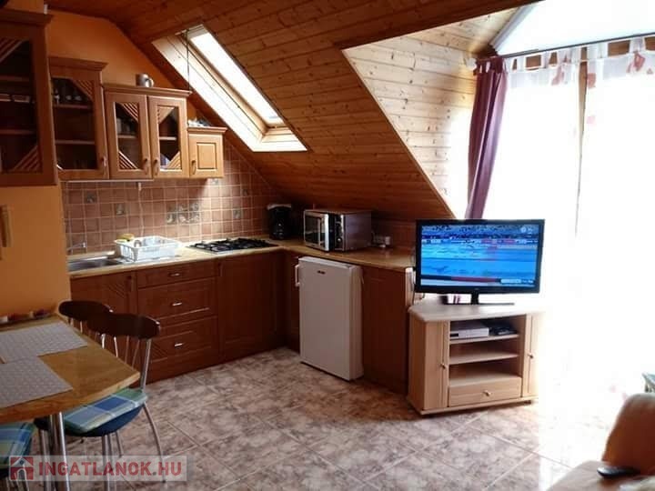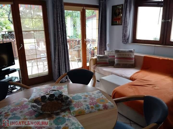 Zala megye, Balatongyörök 195m2-es ikerház 4db apartmannal eladó. A Balatontól 10 perc sétára elhelyezkedő apartmanház lakásai közül 3 db teljesen berendezett, téliesített állapotban található, míg az egyik földszinti átalakítás alatt (vezetékelés, közmű kiállások, álmennyezet előkészítés – befejezés az új tulajdonos feladata lesz, a saját ízlése szerint). A 40-55m2-es lakások közel azonos elosztásúak (2 szoba, konyha étkezővel, fürdőszoba, illemhelyiség, terasz illetve erkély). A 80-as években épült, majd a kétezres években felújított ház melegéről kondenzációs gázkazán gondoskodik. A két helyrajzi számon, összesen 693m2-es telken elhelyezkedő ingatlan földhivatali besorolása: „kivett lakóház, udvar„. A klimatizált ingatlan kertjében az öntözéshez ciszterna, a kikapcsolódáshoz grillezési lehetőség, valamint egy tárolásra, vagy garázsként (némi átalakítás után akár önálló garzonként) is használható épület található.
