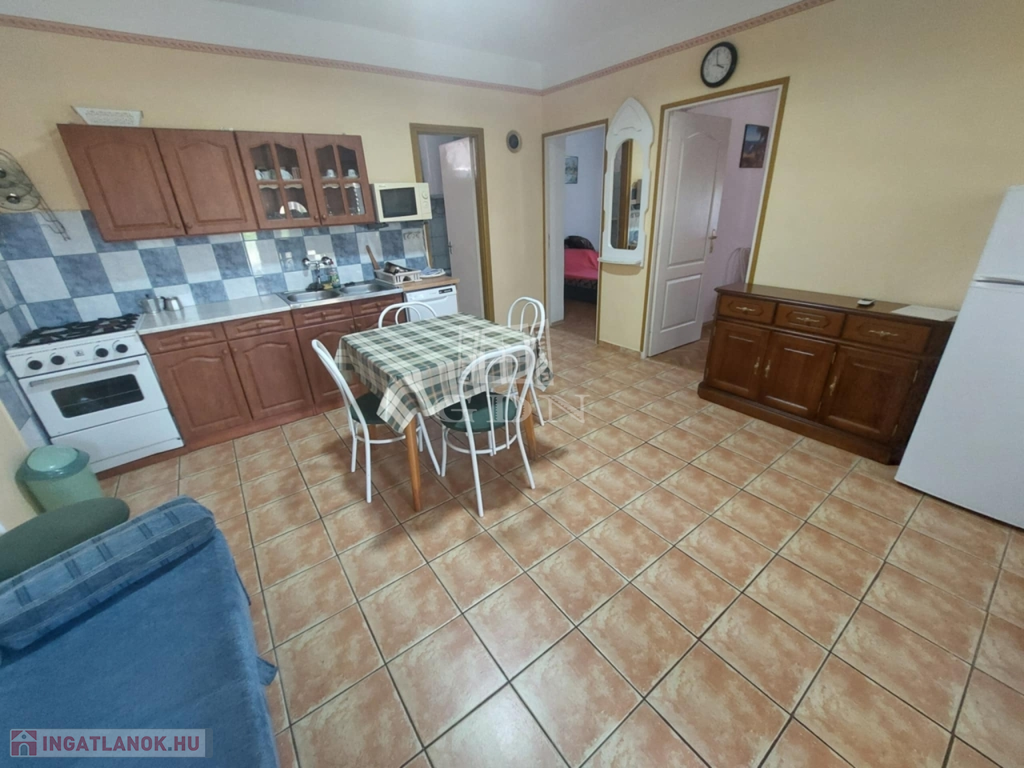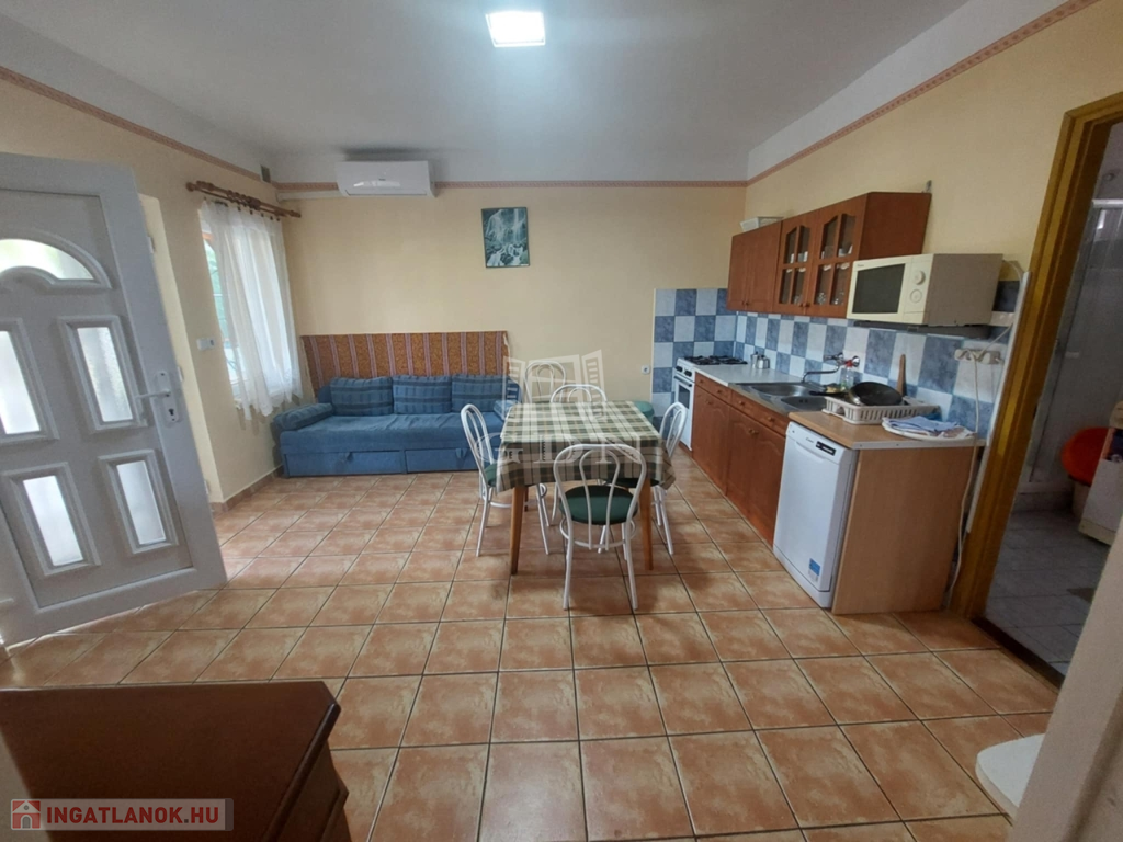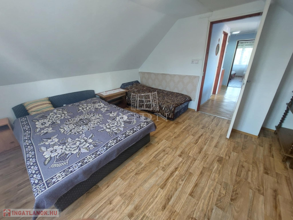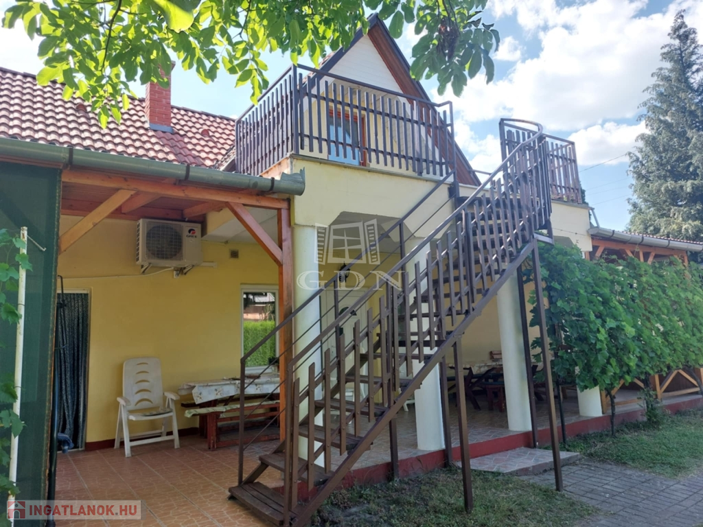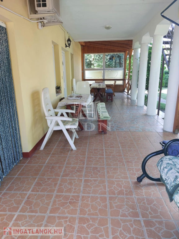 Az 1999-ben épült, jó állapotú, 128 m2-es, 5 szobás nyaraló 863 m2-es parkosított telken helyezkedik el.