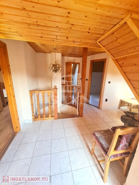 A ingatlan egy 748 m2-es gondozott, körbekerített, sík telken található. Összesen 220 m2-en ad helyet a két lakásnak, melyben a gázon kívül (gáz az udvarban) az összes közmű bevezetésre került. Az egyik lakás fűtése fatüzelésű kandallóval megoldott, illetve a nappaliban található egy villanykandalló is.