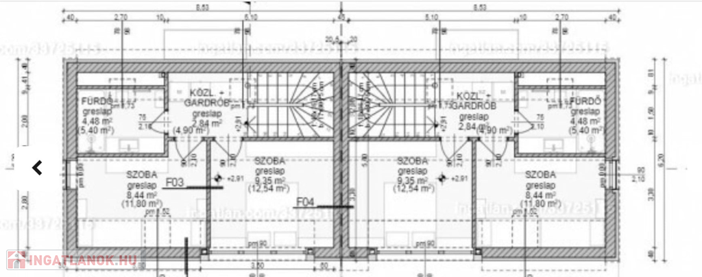 -lakások válaszfala: dupla falazat 2*20 cm és hangszigetelés választja el egymástól.