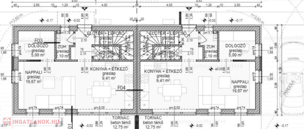 alapterület: 76 m2 lakásonként