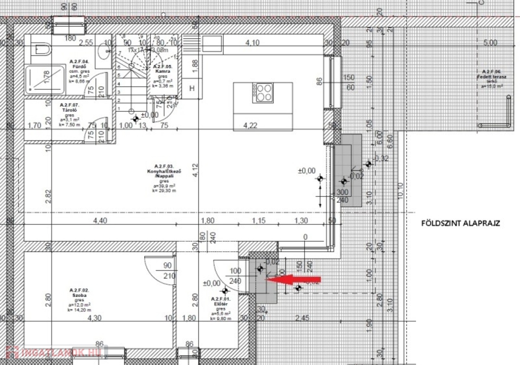 Földszint (69m2): nappali, konyha+étkező, szoba, fürdő+wc, tároló, kamra, fedett terasz (15m2)