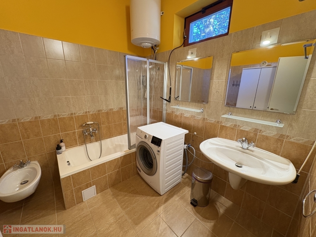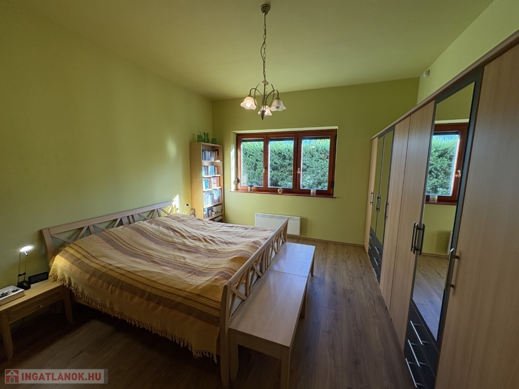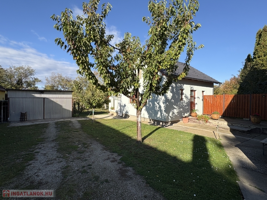 Balatonszárszón 96 m2-es nagyon jó műszaki állapotú családi ház, 44 m2-es melléképülettel, gondozott telekkel eladó. A lakóházban előszoba-nappali, 2 szoba, közlekedő, konyha-étkező beépített konyhabútorral és gépekkel (AEG micro és mosogatógép, elektromos főzőlap és elszívó, Electrolux sütő, és hűtőszekrény), fürdőszoba, wc pissoirral, kamra helyiségek kerültek kialakításra, valamint a közlekedőből nyílik a lejárat a 10 m2-es pincébe is. A lakóház fűtése NOBO elektromos fűtőpanelekkel és a nappaliban kandallóval megoldott, a melegvíz ellátást villanybojler biztosítja. Az épület energetikai korszerűsítésen esett át, amely során a tulajdonos a homlokzatra 15 cm-es BAUMIT hőszigetelést, a padlás födémre 20 cm kőzetgyapot szigetelést rakatott, új borovi fenyő nyílászárókat építtetett be - az ablakokra fémredőnyt rakatott fel, valamint vízszűrőt és riasztót is felszereltetett. A rendezett udvaron 44 m2-es belülről részben már felújított, kívülről szintén hőszigetelt melléképület-kisház áll új Terran Zenit , amelyben egy 1 szoba-konyhás udvari lakrész kialakítható, valamint 1 személyautó részére garázs és tároló is található. Az ingatlan a kitűnő lokációja és a kialakítása miatt akár nyaraltatásra is alkalmas lehet, az autópálya 5 percre van, élelmiszerboltok a közelben megtalálhatók, a strand is csupán 800 m-re van. Telek: 1.429 m2 (155)