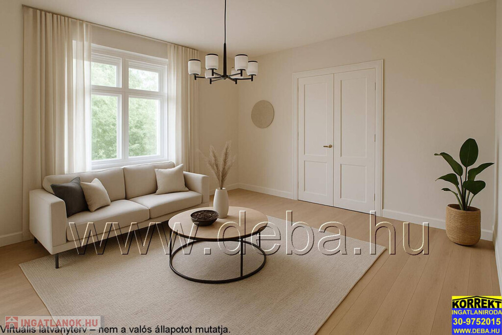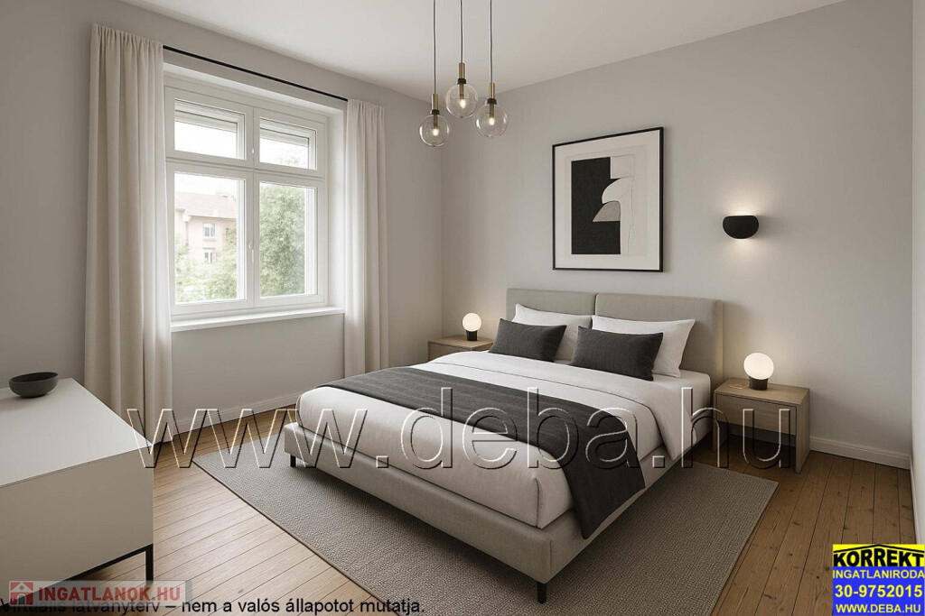 Felhívjuk figyelmét, hogy a hirdetésben szereplő egyes képek virtuális látványtervek, melyek a lakás lehetséges berendezését, felújítás utáni állapotát szemléltetik, nem pedig a jelenlegi állapotot tükrözik.