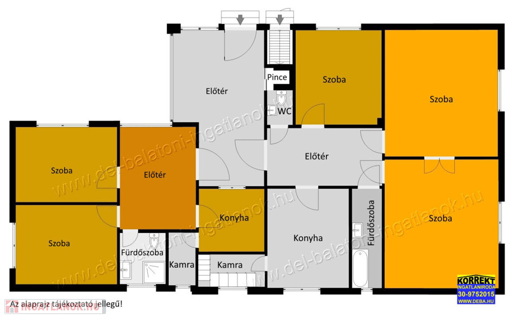 Az ingatlanról készült felvételek, fényképek és alaprajzok a Korrekt Ingatlaniroda tulajdonosa, Szabó Tibor szakmai munkái, amelyekre kizárólagos szerzői jog vonatkozik.