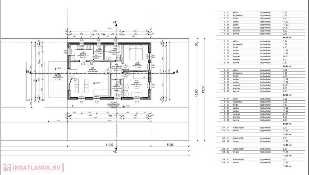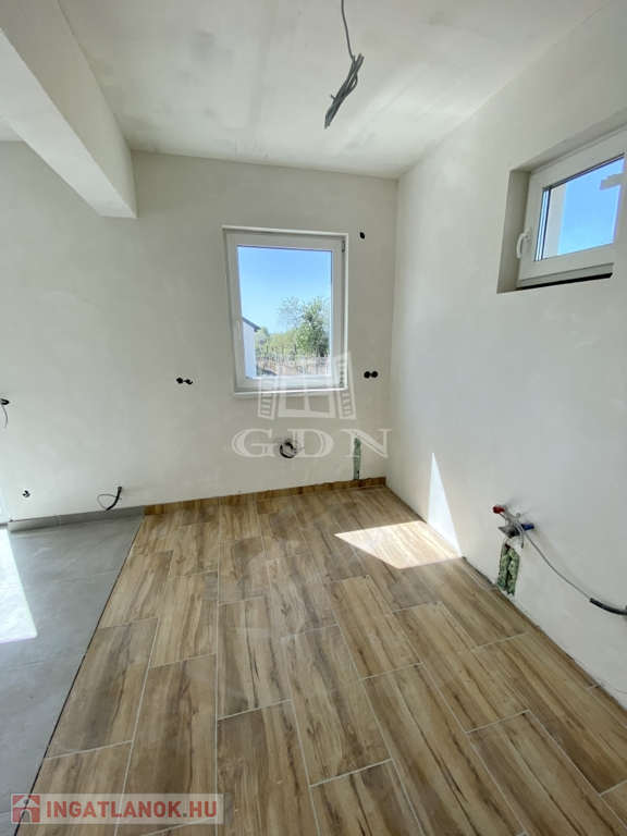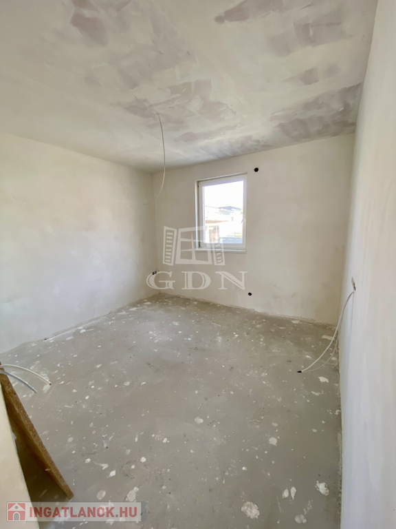 Alsó szinten: világos, déli tájolású amerikai konyhás nappali, két hálószoba, fürdőszoba, valamint egy praktikus kamra, felül még alakíthatóak a helyiségek.