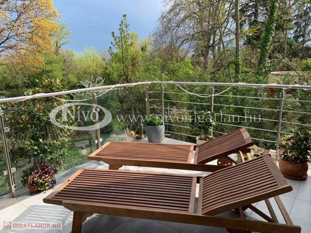 Balatonszepezden, Balatonra néző panorámával, két szintes plusz szuterénes, ~110 m2-es, nagy teraszos (31,08 m2), nyári konyhás, teljes körűen felújított, modern tervezésű nyaraló eladó.