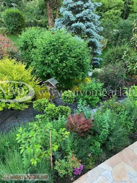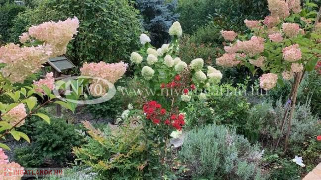 Az ingatlan 949 m2-es elektromos kapuval ellátott, körbekerített, parkosított, több mint 100 féle növénnyel beültetett (mediterrán növények, ritka fák, veteményes-és fűszerkert) gondosan karbantartott telken helyezkedik el, ahol kialakításra került egy hangulatos, teljesen felszerelt, gépesített, 21 m2-es nyári konyha, egy 24 m2-es kocsibeálló illetve több autó számára viacolor térkővel burkolt kocsibeálló is illetve még kerti zuhanyzó, bográcsozó-grillező és egy tároló kamra is megtalálható. A kertben van még fúrt kút és a locsolórendszer is ki van építve.