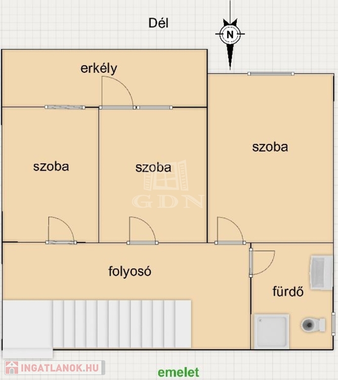- Az emeleten 3 szoba, erkély és egy fürdőszoba, a padlástérben még egy további szoba és egy illemhelyiség került kialakításra.
