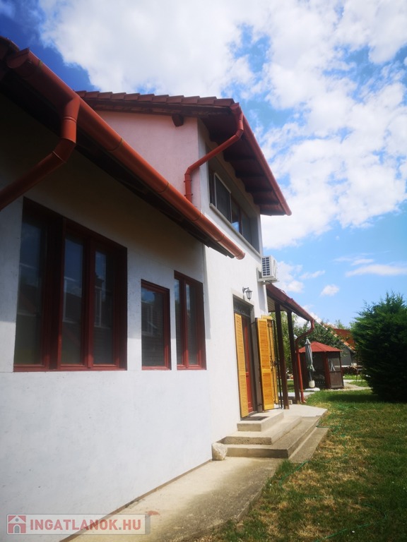 Veszprém vármegye, Balatonudvari, 165m2-es családi ház eladó. A kedvelt Balaton-parti település csendes utcájában található ingatlan fogadószintjén közlekedő, kazánház (tároló), nappali, konyha, étkező, két hálószoba és fürdőszoba, míg a tetőtérben további három szoba, konyha, nappali (kilátással a Balatonra), és fürdőszoba került kialakításra. A 2013-ban, 709m2-es telekre épült, szigetelt családi ház melegéről fatüzelésű kazán, valamint kandalló gondoskodik. A meleg vizet elektromos bojler biztosítja. A klimatizált, részben alápincézett, tehermentes ingatlan udvarán pergola, fúrt kút található, továbbá a gázrákötési lehetőség is biztosított.