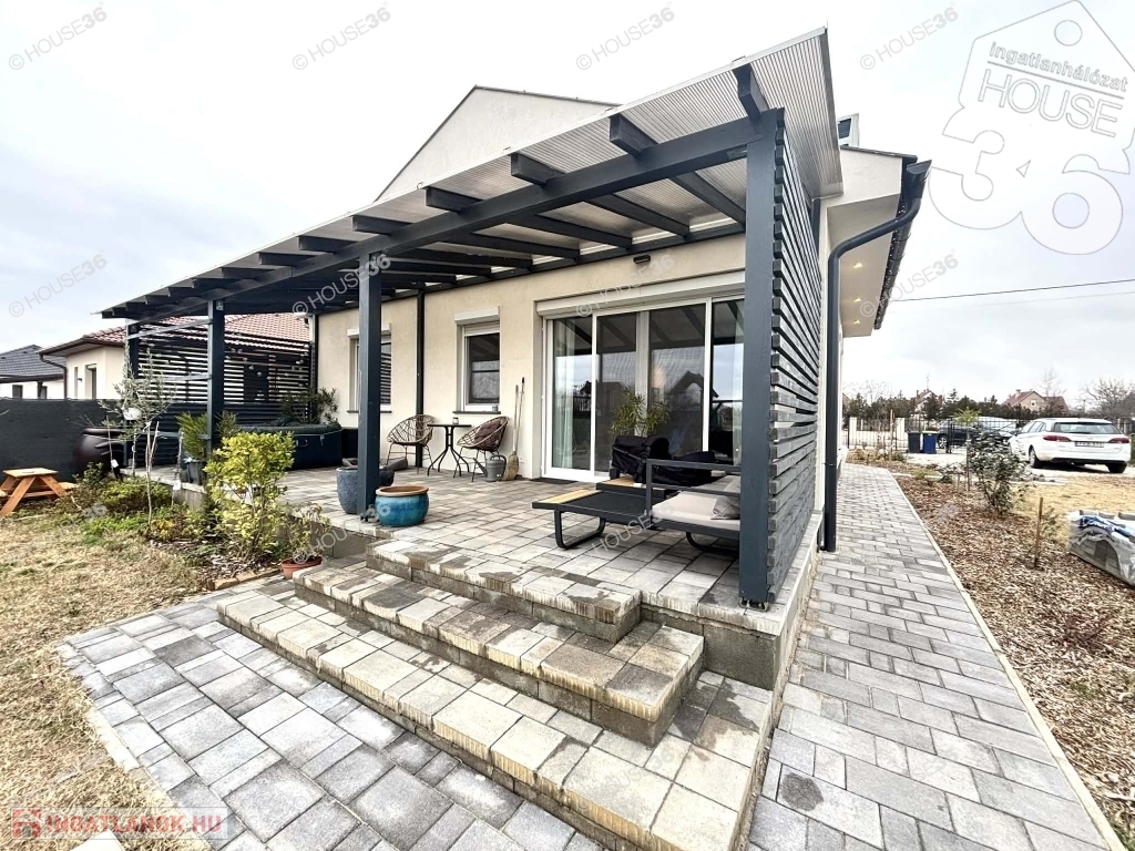 2023-ban épült, modern, 101 m2-es családi otthon keresi új tulajdonosát egy különálló 760 m2-es, teljesen közművesített és körbe kerített telken.