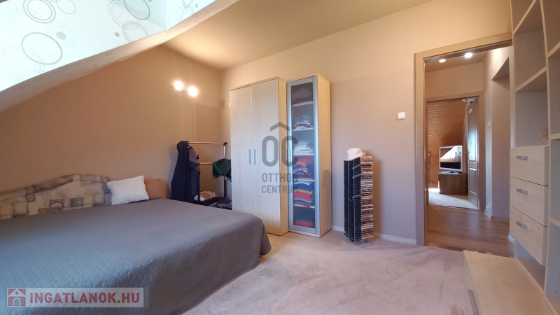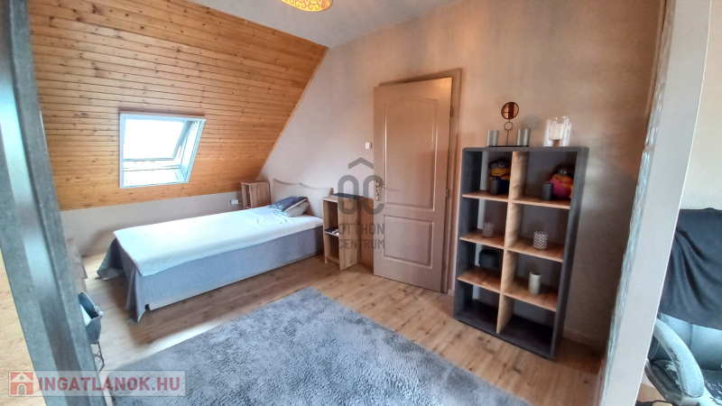 - az emeleti rész 3 hálószoba, gardrob, közlekedő és fürdőszoba elosztású