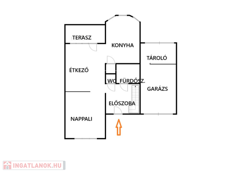- konyha- étkező ( közvetlen terasz kapcsolattal) és nappali egy légtérben került kialakításra a földszinten, ahol még fürdőszoba, kölön WC, kamra és előszoba található