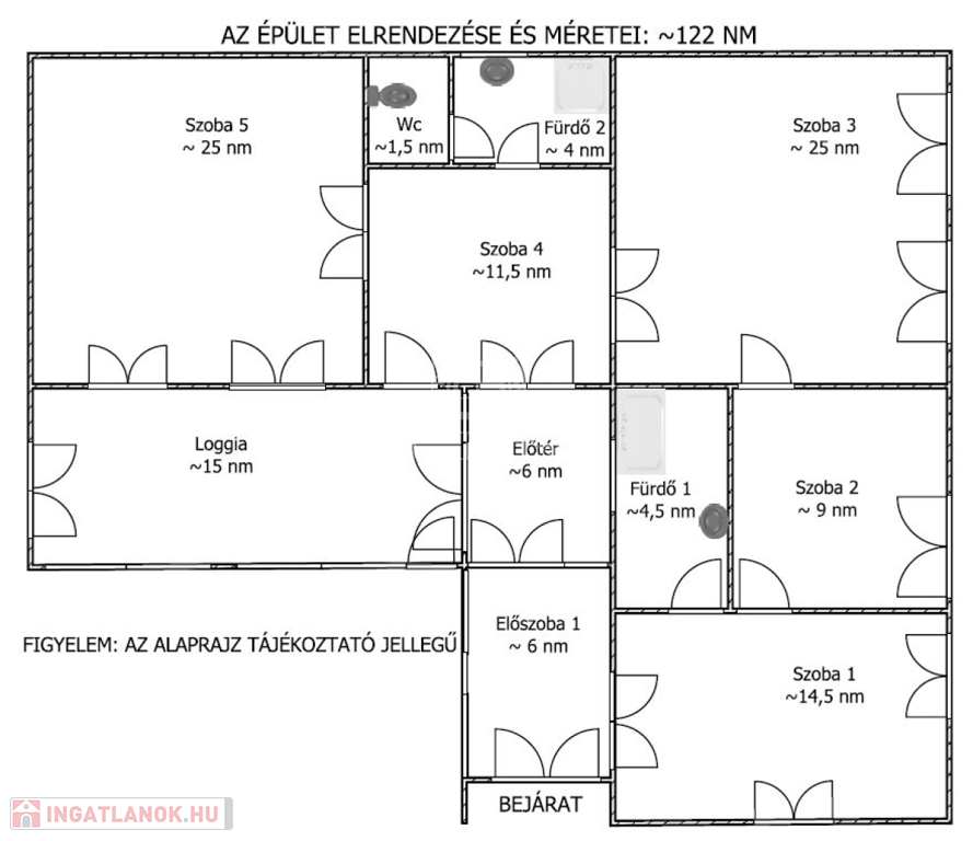 A családi ház hasznos alapterülete 122nm, melyben található: